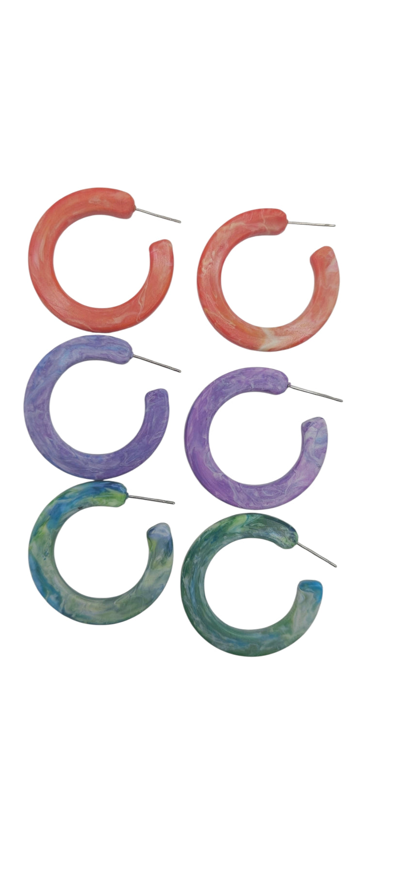 ​Uniquely Yours: Due to the nature of the recycling process, the colour swirl in every pair of hoop earrings is different. No two pieces are ever identical—just like you.